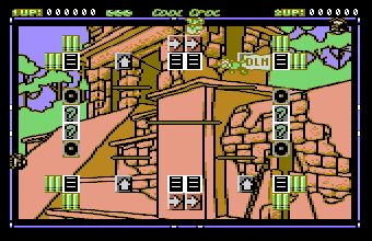 Cool Croc Twins ist ein Plattform-Spiel mit leichten Ähnlichkeiten zu Bomb Jack. Ziel ist es, alle schwarzen Blöcke innerhalb einer Zeitbegrenzung umzufärben. Dazu muß man gegen die Blöcke springen. Bei jedem Treffer färbt sich ein Drittel des Blockes um. Das Krokodil, das man spielt, kann den ganzen Bildschirmrand und rund um jede Plattform laufen. Sprünge gehen bis zum anderen Bildschirmrand, oder bis man auf eine andere Plattform trifft. Jeder Level ist mit Gegner bevölkert, deren Berührung tödlich ist (es sei denn, man ist gerade im Sprung). Die Gegner springen die schwarzen Blöcke auch an, bei einem Treffen färben sie ein Drittel des Blocks wieder schwarz. Weitere Schwierigkeiten sind z. B. verschiedene Arten von Steinen, die im Weg stehen, oder Fragezeichen-Blöcke, die einen in zufällige Richtungen umleiten.