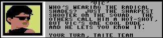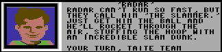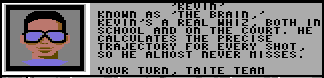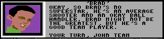 Nachdem man sich für eines der vier Spielfelder entschieden hat, hat man die Wahl zwischen einem menschlichen Gegner oder der CPU. Danach wählt man abwechselnd mit dem Gegner aus zehn Kids seine Mannschaft aus, die immer aus drei Spielern besteht. Wer mit der Auswahl anfängt, wird mit einem Münzwurf entschieden. Zu jedem Spieler wird ein Porträt und eine kurze Info zur Person gezeigt, die einem die Wahl erleichtern soll. Im Gegensatz zu Street Sports Baseball ist hier keine zufällige Mannschaftsbildung möglich, auch das Speichern einer Zusammenstellung fehlt.