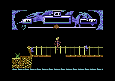 Einzig bei Vixen bzw. ihrem Fuchs-alter-ego haben sich die Macher die Mühe gemacht, die Multi-Colour-Möglichkeiten des C64 zu nutzen und die Sprites wirklich gut zu animieren. Angeblich erstmals wurden bei Vixen in Menschen- und Fuchsgestalt Bewegungen vom realen Vorbild digitalisiert. Zum Thema "Saurier-Mutationen" muss man noch sagen, dass es sich offenbar samt und sonders um Zwergsaurier handelt, die teilweise doch eher an Arachniden, Fledermäuse oder Schafe erinnern als an Reptilien. Hat man sich also an der schönen Dame im blauen Bikini einmal sattgesehen, wirkt das grafische Gesamtpaket doch bald eintönig. In höheren Levels auftauchende Baumstämme oder Brücken statt der ewig gleichen Landschaft aus spärlich bewachsenem Gestein können diesen Eindruck nur sehr bedingt heilen.