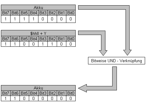 | Bitweise UND-Verknüpfung mit Akkumulator |