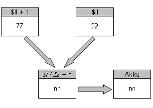 Beispiel: LDA $hhll, Y[Bearbeiten | Quelltext bearbeiten]