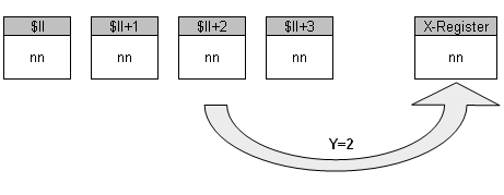 Beispiel: LDX $ll, Y[Bearbeiten | Quelltext bearbeiten]