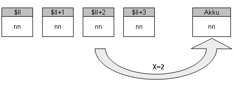 Beispiel: LDA $ll, X[Bearbeiten | Quelltext bearbeiten]