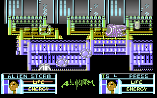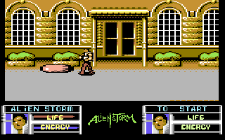 Alien Storm ist eine Mischung aus Shoot'em Up und Beat'em Up, und erschien 1990 zunächst als Arcade-Automat. Die C64-Version folgte 1991.
