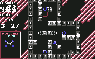 Atomix ist ein Denkspiel, das 1990 für den C64 erschienen ist. Ziel in jedem Level ist es, ein vorgegebenes Molekül aus den im Level verteilten Atomen zusammenzusetzen. Die Atome können angewählt und bewegt werden, allerdings wird ein Atom immer solange in eine Richtung bugsiert, bis es auf ein Hindernis oder ein anderes Atom trifft. Es gibt eine Zeitbegrenzung für jedes Level. Wenn man nicht innerhalb der Zeit fertig wird, ist das Spiel vorbei. Je schneller man einen Level erfolgreich beendet, desto mehr Punkte bekommt man.