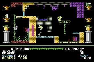 Robotron2084: "Mir gefällt Auf Wiedersehen Monty wesentlich besser als der Vorgänger, weil es nicht ganz so brachial-linear gestaltet ist und die Flugsequenzen das Spiel immer wieder auflockern. Auch die Musik ist meiner Meinung nach deutlich eingängiger als der zerfahrene Track von MotR, obwohl ich sie sowieso eigentlich immer abschalte um Hubbards mitunter urkomische "Nationalhymnen" zu hören..."Oh Tannenbaum" als Kennmelodie des Ostblocks, Wahnsinn! Auch, dass man am Anfang kein doofes Survival Kit zusammenstellen muss, ohne dass man irgendwann mitten im Spiel nicht mehr weiterkommt hat mir damals weitaus besser gefallen und dieser Eindruck vom Spiel hat sich bei mir bis heute erhalten. Das Thema Europareise und die vielen niedlichen länderspezfischen Details und Sprites, die die Bildschirme ausfüllen geben dem Spiel auch eine wesentlich lockerere Note. AWM ist natürlich mitunter genauso unfair wie MotR, was zu einem Großteil an den leider immer noch vorhandenen "Zerstampfern" im Spiel liegt, die unberechenbar sind und die man einfach meiden muss, wenn man nicht gerade vorhat, das Spiel durchzuspielen, aber so wahnsinnig ist sowieso eh keiner (oder doch?). Von mir aus hätte es ruhig noch eine Fortsetzung in diesem Stil geben können, gab es aber nicht, weil bei "Impossamole" designtechnisch andere Wege beschritten wurden. Zusammen mit Wizard und Impossible Mission gehört AWM ganz oben auf meine Top-Liste der Platformer und ich gebe 8 von 10 Punkten."