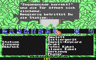 0, S, S, benutze Amulett/Vertiefung, untersuche Auswurfschacht, nimm Beep-Box, S, W, W, W, nimm Raumanzug, off Schutzanzug, on Raumanzug, on Transmitter,