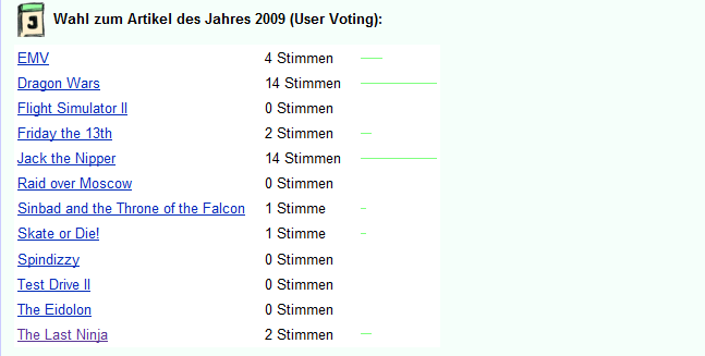 - The Last Ninja (2 Stimmen) und Friday the 13th (jeweils 2 Stimmen)