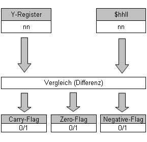 Der Assembler-Befehl CPY $hhll vergleicht das Y-Register mit dem Inhalt der Speicherzelle $hhll.