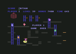 Glücklicherweise bekommen es auch die Hühner mit der Angst zu tun und verlassen fluchtartig das Gelände. Sie kehren erst ab Level 17 zurück, also mit dem Beginn der dritten Schleife durch die acht Hühnerställe, sodass es für Harry immer schwerer wird, voranzukommen, denn nun hat er es mit der geballten Kraft von Ente und drei Hühnern zu tun. In der vierten Schleife ab Level 25 kommen allerdings noch zwei weitere Flattermänner hinzu, und wer es bis Level 33 schafft, muss in der fünften und letzten (Dauer-)schleife dann sogar den Turbo einlegen, denn nun werden alle Tiere noch eine Spur schneller, als wäre das Spiel nicht zuvor bereits schwer genug gewesen.