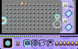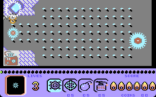 Das Geschehen findet jeweils auf einem Bildschirm statt, wobei ein Level auch aus mehreren Bildschirmen bestehen, zwischen dehnen nach erreichen des Ziel jeweils gewechselt wird. Das eigentliche Spielfeld ist grafisch zweckmäßig gehalten, wie auch die Zahnräder. für optische Auflockerung sorgen Grafiken am Rand des Spielbrettes, die zum Teil animiert sind, sowie die auf die über das Spielfeld turnenden Viecher, die zwar den Spieler behindern, aber putzig animiert sind.