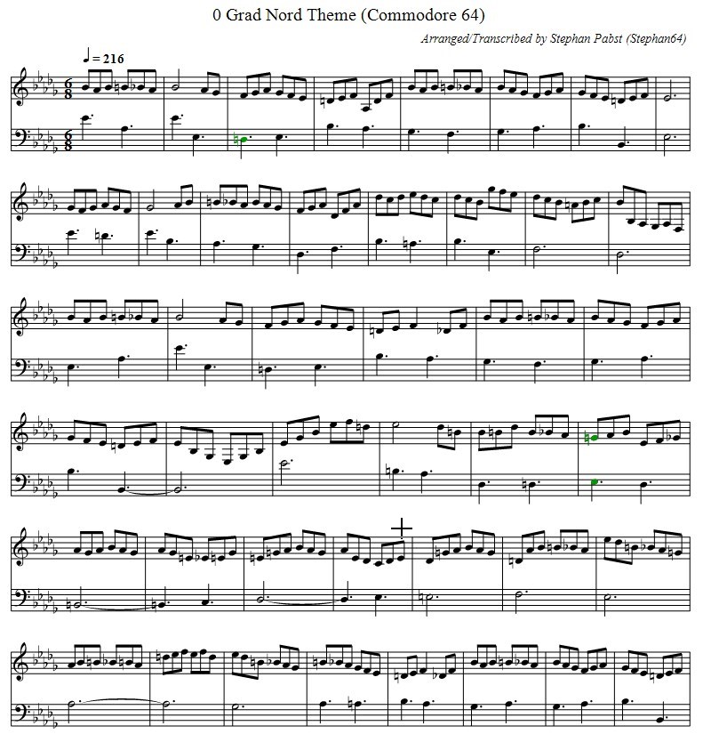 Musiknoten der Titelmelodie zum Spiel "0° Nord"