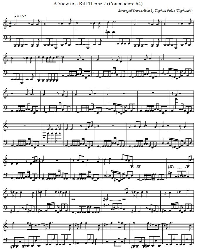 Musiknoten der zweiten Begleitmelodie zum Spiel "A View to a Kill" (erste Seite)