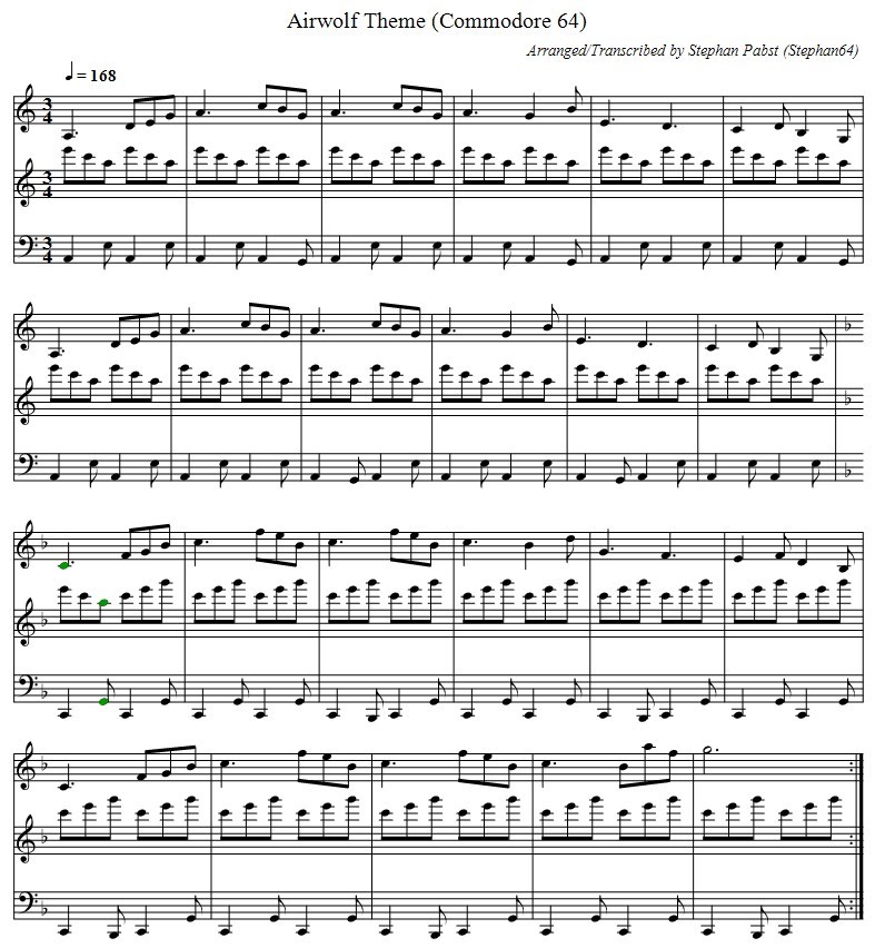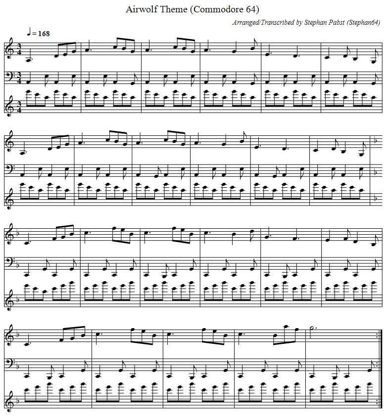 Musiknoten der Begleitmelodie zum Spiel "Airwolf"
