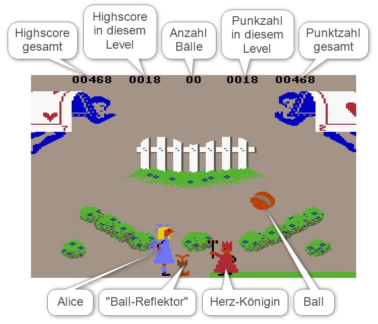 Bildschirmaufbau in Level 4 des Spiels "Alice in Videoland"