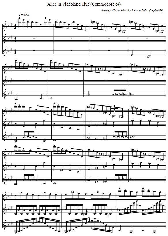 Musiknoten der Titelmelodie zum Spiel "Alice in Videoland"