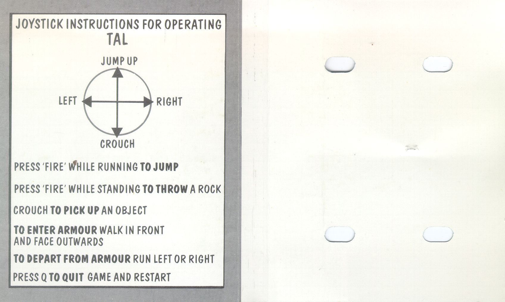 Inlay der Kassette zum Spiel "Antiriad", Innenseite