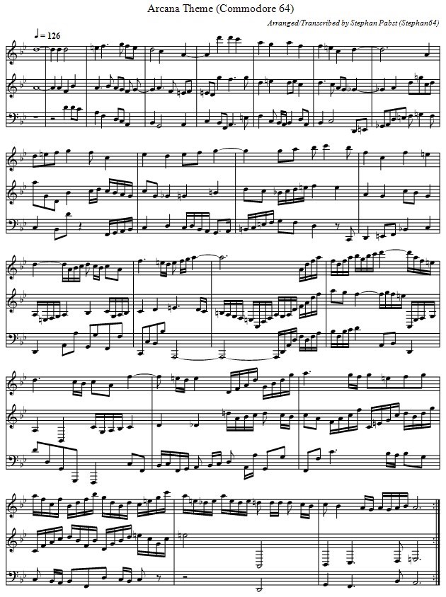 Musiknoten der Titelmelodie zum Spiel "Arcana"
