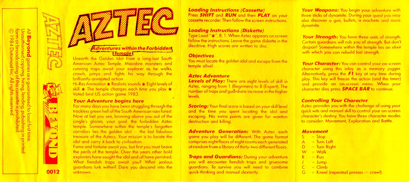 Außenseite des Inlay der Kassettenversion des Spiels "Aztec"
