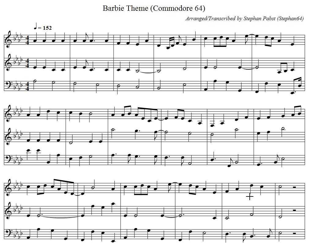 Musiknoten der Titelmelodie zum Spiel "Barbie"