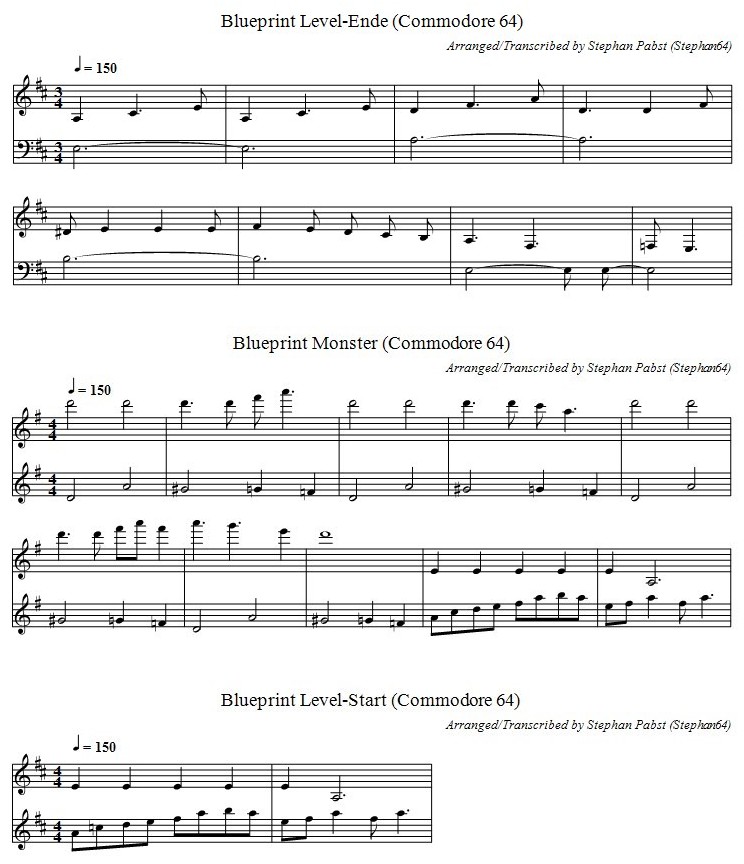 Musiknoten der Sequenzen beim Levelwechsel im Spiel "Blueprint"