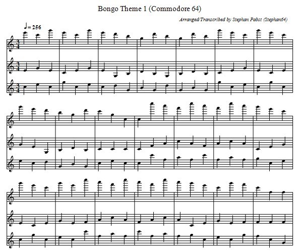 Noten der ersten Startmelodie des Spiels "Bongo"