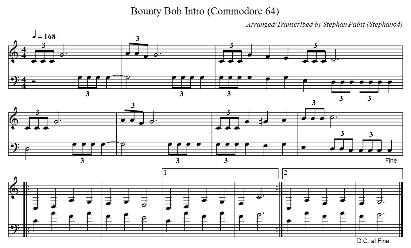 Musiknoten der Titelmelodie beim Spiel "Bounty Bob Strikes Back"