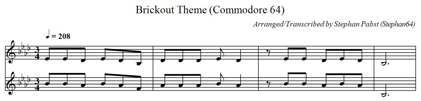 Musiknoten der Titelmelodie zum Spiel "Brickout"