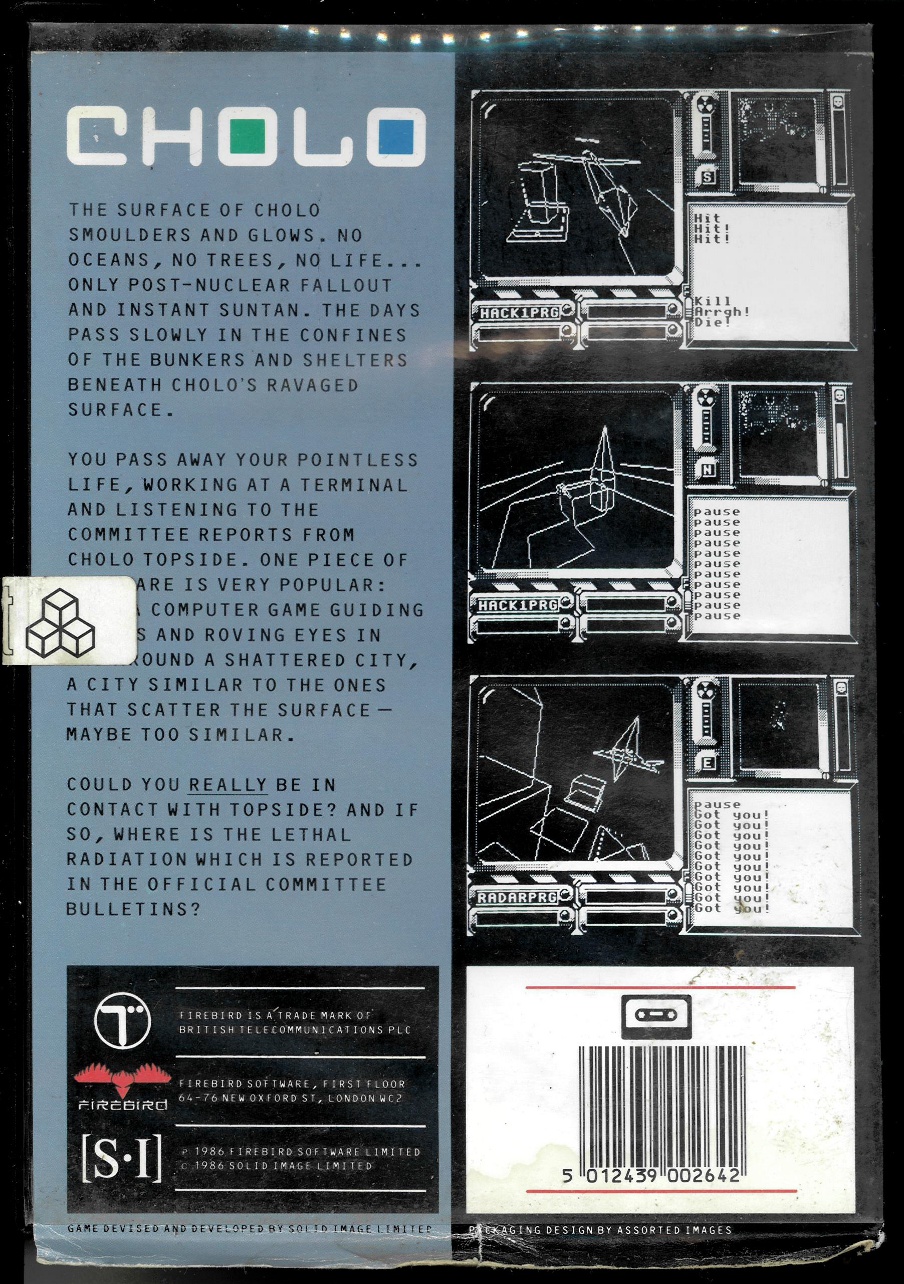 Rückseite der Kassettenversion zum Spiel "Cholo"