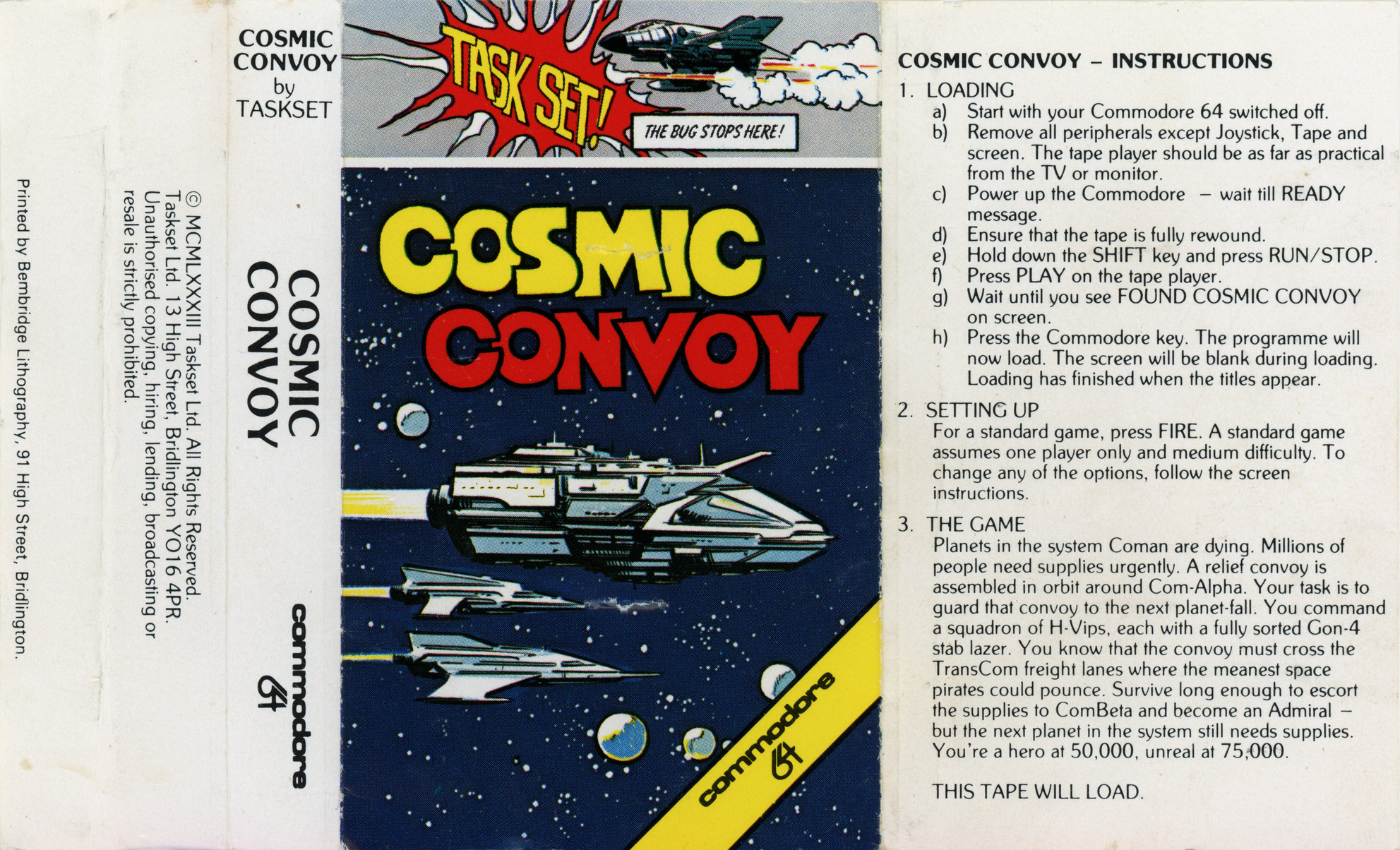 Inlay der Kassette zum Spiel "Cosmic Convoy"