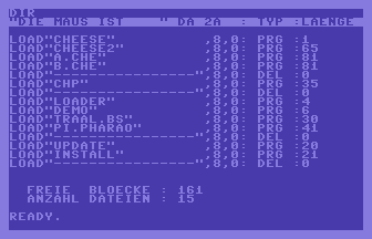 Befehl DIR der BASIC-Erweiterung PLH mit Softmaus-Diskette