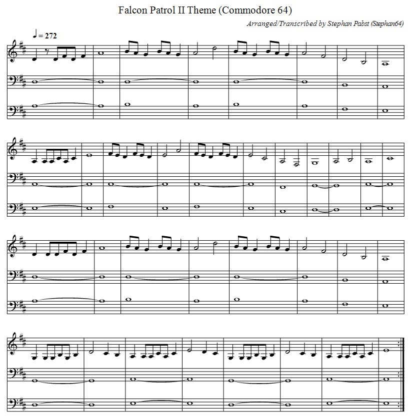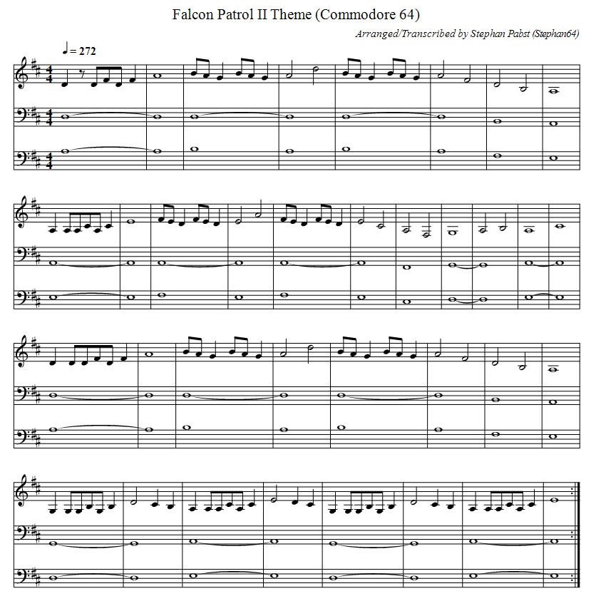 Musiknoten der Startmelodie zum Spiel "Falcon Patrol II"