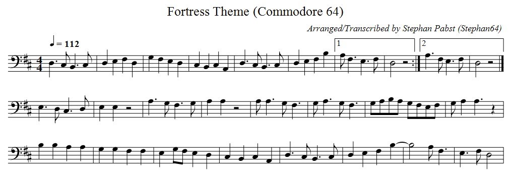 Musiknoten der Startmelodie zum Spiel "Fortress"