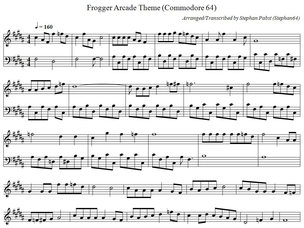 Musiknoten der musikalischen Untermalung zum Spiel "Frogger Arcade"