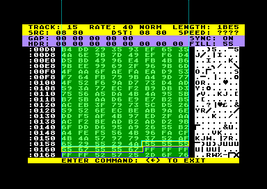 | 19:20, 9. Mai 2016 | 384 × 272 (8 KB) | ZAK256 (Diskussion | Beiträge) | Dargestellt ist die Spur 21 einer Diskette, welche mit eine speziellen Format Routine formatiert wurde. Die Angezeigte erfolgt durch den MAVERICK - RAMBOard TRACK EDITOR. |