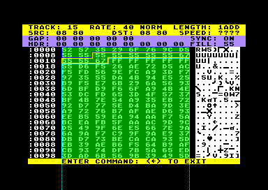 Dargestellt ist die Spur 21 einer Diskette, einer GEOS 64 2.0 Deutsch System Diskette. Die Angezeigte erfolgt durch den MAVERICK - RAMBOard TRACK EDITOR.
