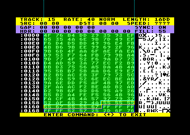 Dargestellt ist die Spur 21 einer Diskette, einer GEOS 64 2.0 Deutsch System Diskette. Die Angezeigte erfolgt durch den MAVERICK - RAMBOard TRACK EDITOR.