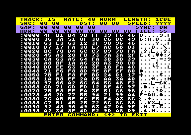 Dargestellt ist die Spur 21 einer Diskette, welche nie formatiert wurde. Die Angezeigte erfolgt durch den MAVERICK - RAMBOard TRACK EDITOR.
