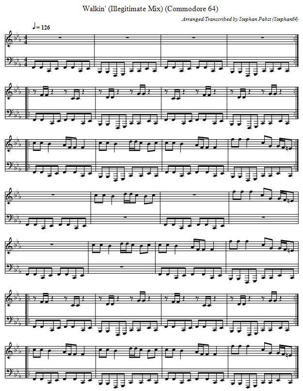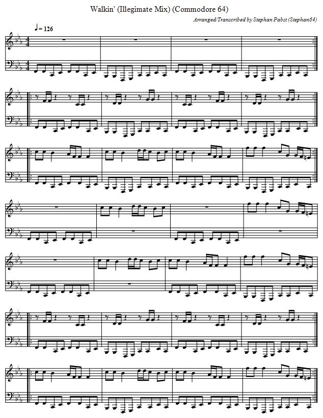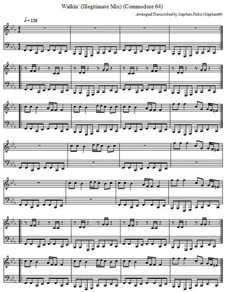 Musiknoten des Musikstücks "Walkin'" aus dem Spiel "Ghettoblaster"