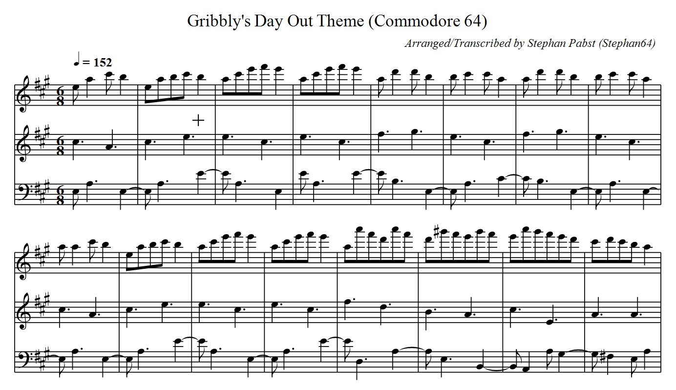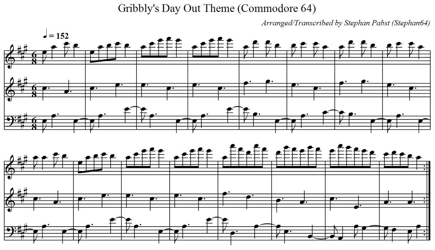 Noten der Auftaktmusik des Spiels "Gribbly's Day Out"