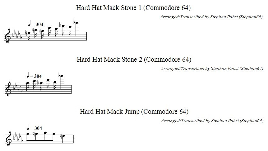 Musiknoten der Begleitmelodien zum Spiel "Hard Hat Mack" (zweiter Teil)