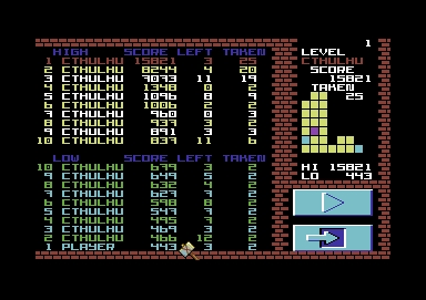 | aktuell | 14:10, 13. Mai 2007 | 384 × 282 (59 KB) | Cthulhu (Diskussion | Beiträge) | High score for Brickout, level 1. | |