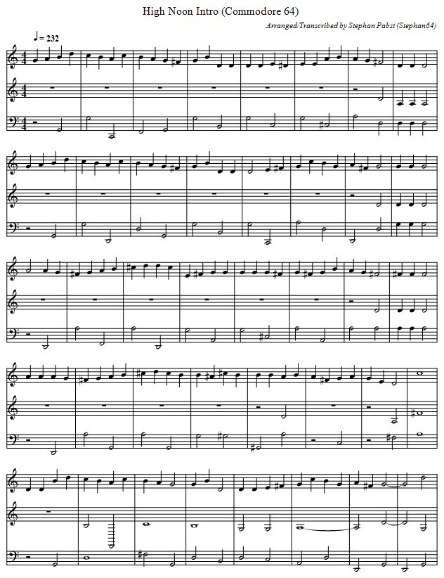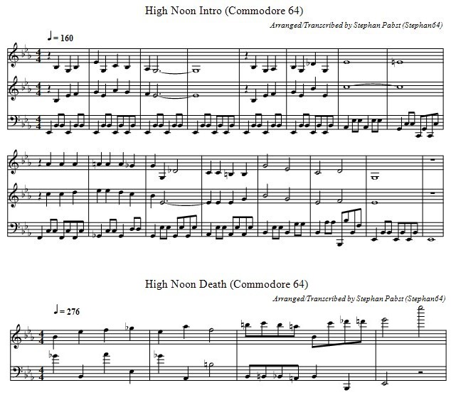 Musiknoten der Melodien beim Start und beim Verlust eines Lebens im Spiel "Highnoon"