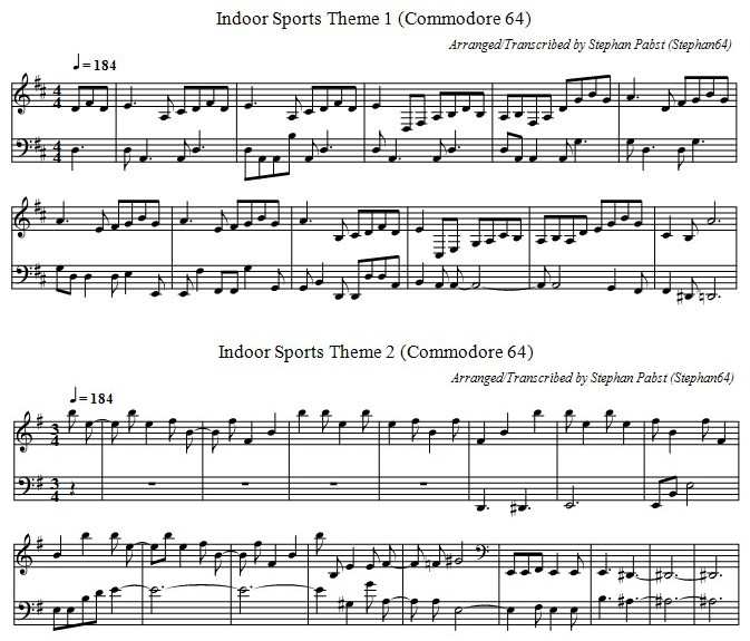 Musiknoten der ersten und zweiten Begleitmelodie zum Spiel "Indoor Sports"