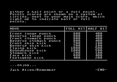 Punktetabelle aus der Anleitung von Jack Alien (www.remember64.de)