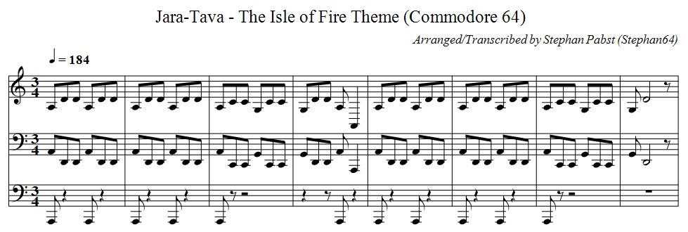 Musiknoten der Titelmusik zum Spiel "Jara Tava - The Isle of Fire"