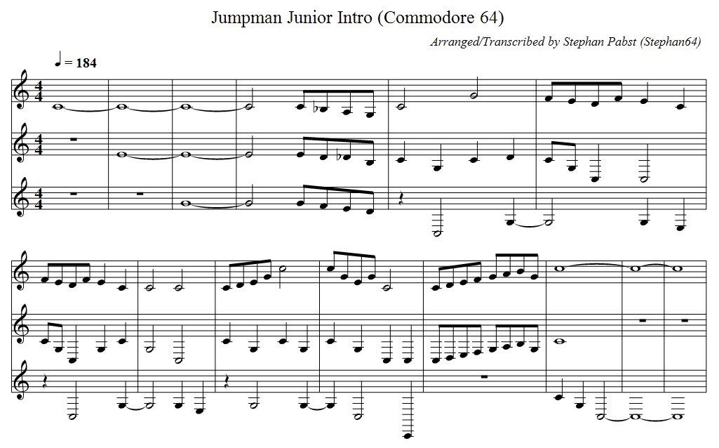 Musiknoten der Titelmelodie beim Spiel "Jumpman Junior"