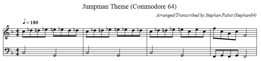 Musiknoten der Titelmelodie zum Spiel "Jumpman"