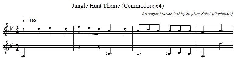 Musiknoten der Startmelodie zum Spiel "Jungle Hunt"