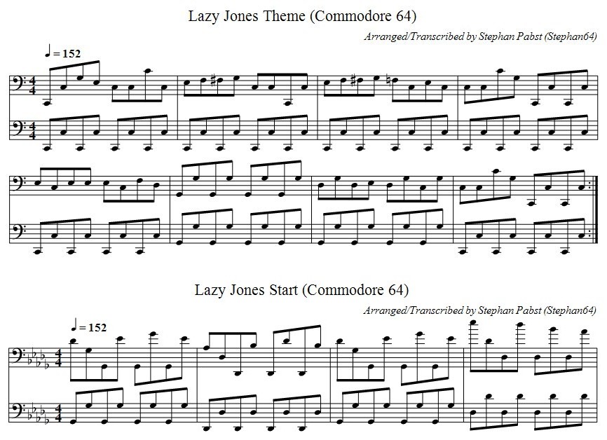 Musiknoten der Melodien beim Herumwandern im Hotel und beim Betreten eines neuen Raums im Spiel "Lazy Jones"